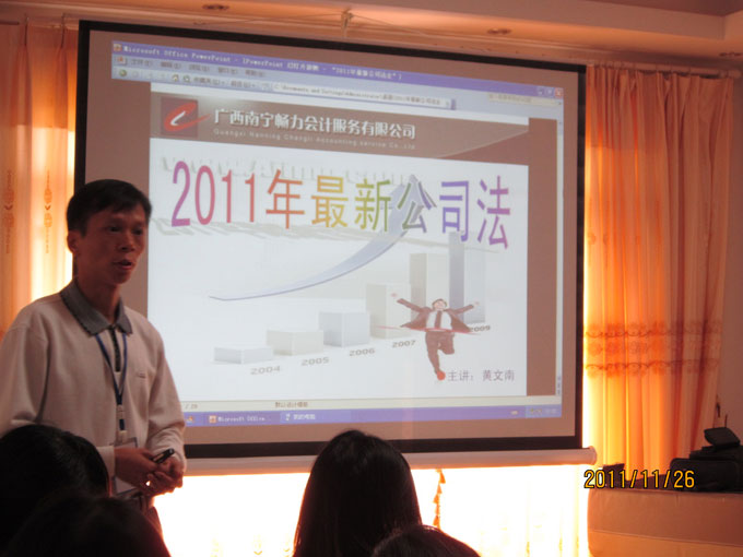 2011年11月26日星期六上午,公司对员工进行学习培训,主要培训内容包括员工日常行为规范及学习《最新公司法》进行培训。