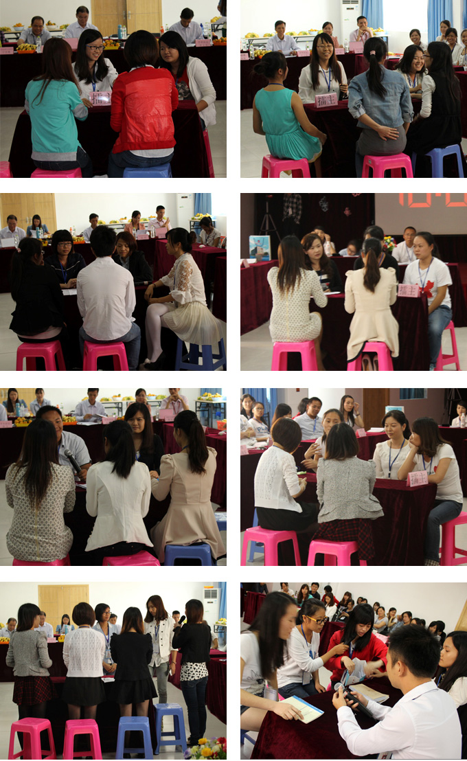 第二个环节是情景模拟,8组队员分别根据之前抽签的题目进行现场模拟签单谈业务、处理客户回访和投诉、业务办理咨询等日常工作的情景,这个环节特色在于每组的表演对手由对手组扮演,以此来增加表演的真实性和难度,真正考验各位选手的临场专业知识和应变沟通能力。这个环节的表演可谓是精彩纷呈、欢乐不断,表演者们的精彩提问和回答夺得现场掌声、欢呼声不断。评委们对每个情景模拟都一一打分,并针对一些精彩问答和不足之处进行了详细点评。