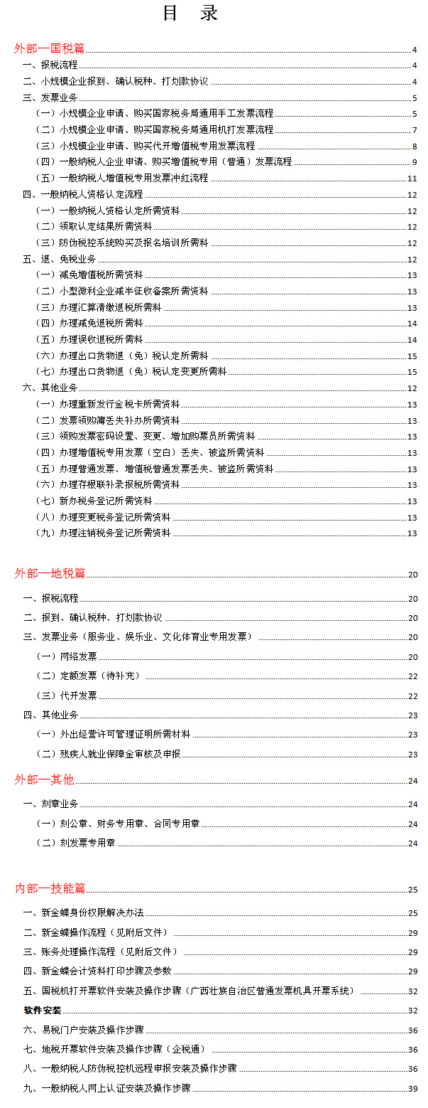 《账务处理流程及标准》及《税务办理指南》