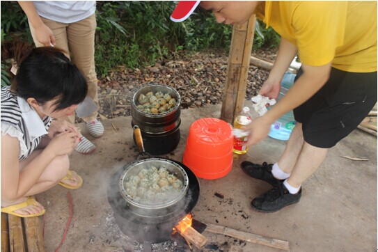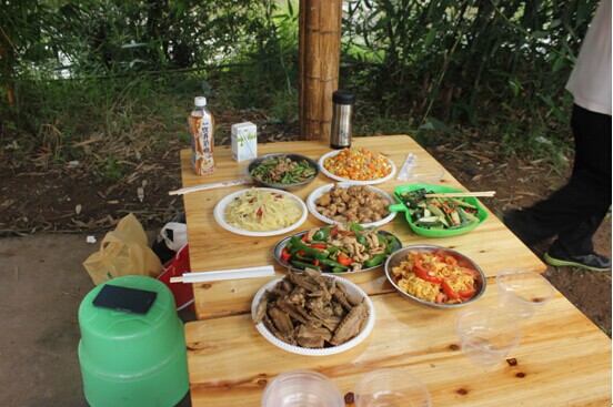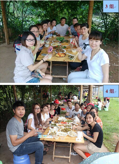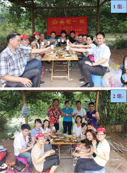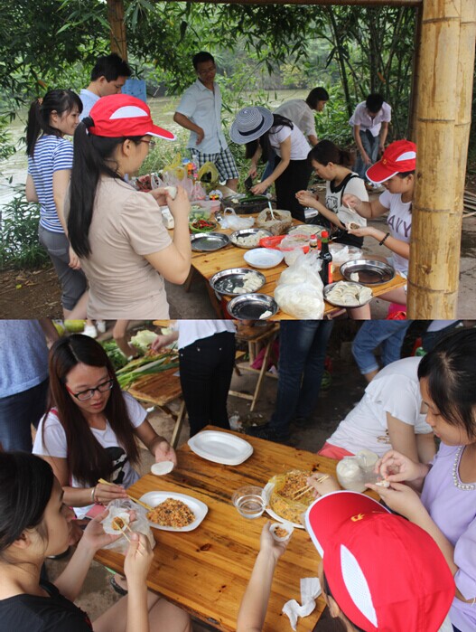 9:30分,三辆满载着畅力全员欢声笑语的大巴车到达竹泉岛,各小组立即自觉各就各位,拿出各组准备的食物和餐具,开始了今天的第一项参赛活动---野炊美食制作大比拼! 精湛的厨艺、娴熟的刀工、美味的烹调,大家都有条不紊的进行着……下面让我们来看看各位厨神的别样风采吧!