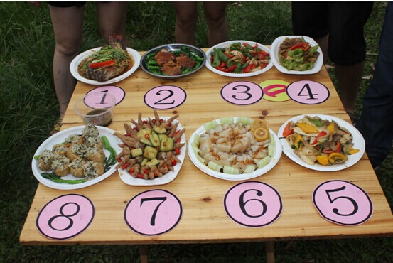 中午12点整,经过2个小时的厨艺准备,各小组正式亮相参赛作品,放眼望去,色香味俱全。大家对此次的竞赛都认真的做足了准备,但比赛总会有输赢,经过评委们一一品尝,并进行统一不记名投票,最终由终极一组、创意六组共同夺得第一(即下图的1组和6组)!祝贺他们吧!