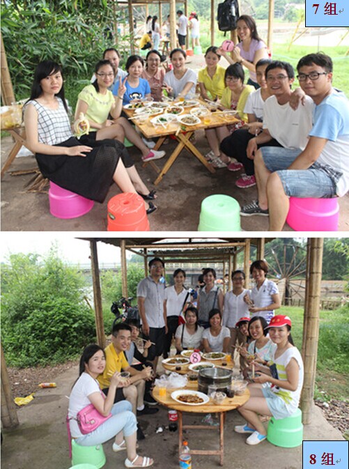 用餐结束后是短暂的休息时间,大家到处散步、尽情放松、合影留念……畅力大家庭不仅让我们成为了工作上的好伙伴,更让我们彼此拉近距离,成为了生活中的好朋友。 随后,有趣又刺激的团队拓展活动开始了。大家集合在竹泉岛一块小草坪,各小组分别上前展示团队风采和口号。活动共分为两个游戏,八个小组依次进行比赛,两轮比拼之后,累计得分最高的小组获胜!