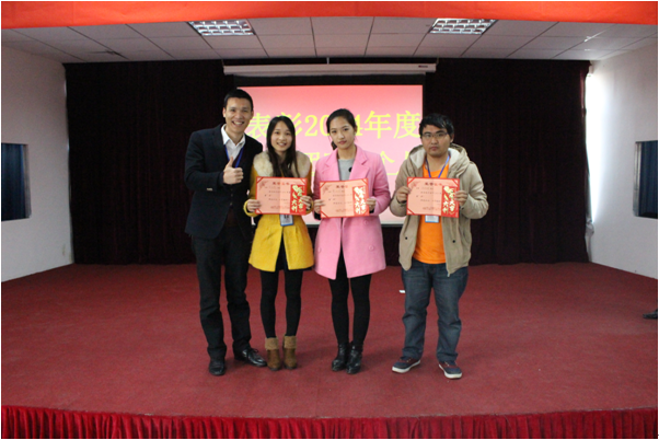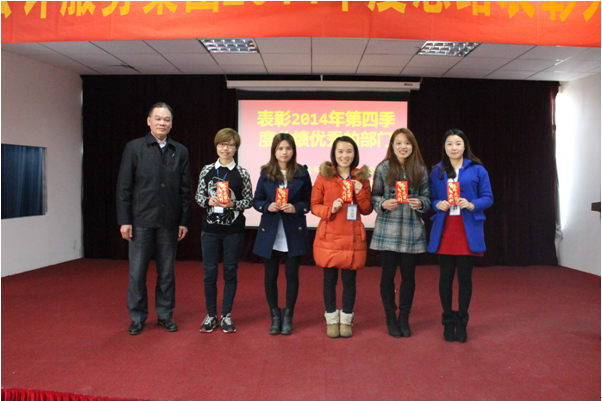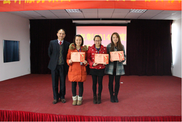1. 表彰2014年第四季度完成业绩优秀的分公司,常务副总裁亲自颁奖。