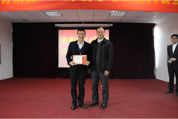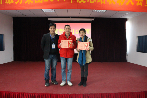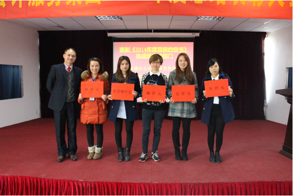 2. 表彰《2014年度目标约定书》完成优秀的分公司,公司总裁亲自颁奖。