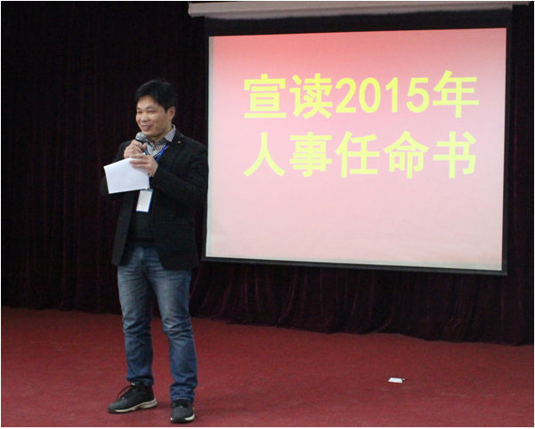 总结表彰大会环节四:由集团人力资源部经理隆重宣读2015年人事任命书,这意味着畅力集团化发展又迈出新的一步。
