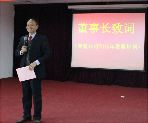 总结表彰大会环节五:由总裁为全员进行公司2015年发展规划致词:激情与汗水铸造过去,理性和坚强成就未来。2015年品牌年将是公司发展战略全面落实的一年,我们的战略更加明确,思路更加清晰,基础更加扎实,规模更加扩张,管理更加完善,执行力更加增强,企业文化内涵更加丰富,我们将续写华章,缔造奇迹,勇往直前!
