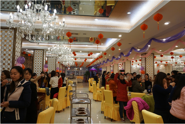 激励人心的总结表彰大会结束后,全体员工一同前往喜福来大酒店共进晚宴。签到、入座一切都井然有序的进行着。随后,主持人宣布晚宴正式开始,首先为我们带来开场曲的是在线做账小组组长熊广文,一曲自弹自唱的《飞得更高》让开场气氛节节攀升,大家一起合唱、一起喝彩,好不热闹,场下涌现出一批“熊粉”。