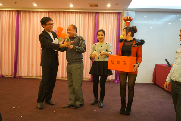 祝酒仪式结束,大家开始尽情地享受佳肴美宴,畅谈着我们的过去和未来。期间各部门相继挨桌敬酒,欢声笑语连成一片,畅力这个大家庭其乐融融……在大家都玩得不亦乐乎的时候,我们振奋人心的抽奖环节已经到来,此环节的奖品分三个等级,共计34人获奖,大家笑脸盈盈的捧着奖品,享受着属于他们的那一份幸运和喜悦!