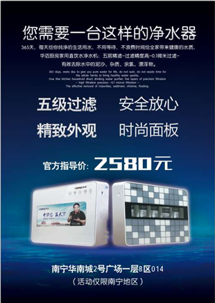 华迈HM-300直饮水净水器,365天,每天给您纯净的生活用水,不用浪费过多的时间,即可带来健康的水质。五层精滤-过滤精度高-0.1微米过滤-有效去除水中的泥沙、杂质、余氯、漂浮物。