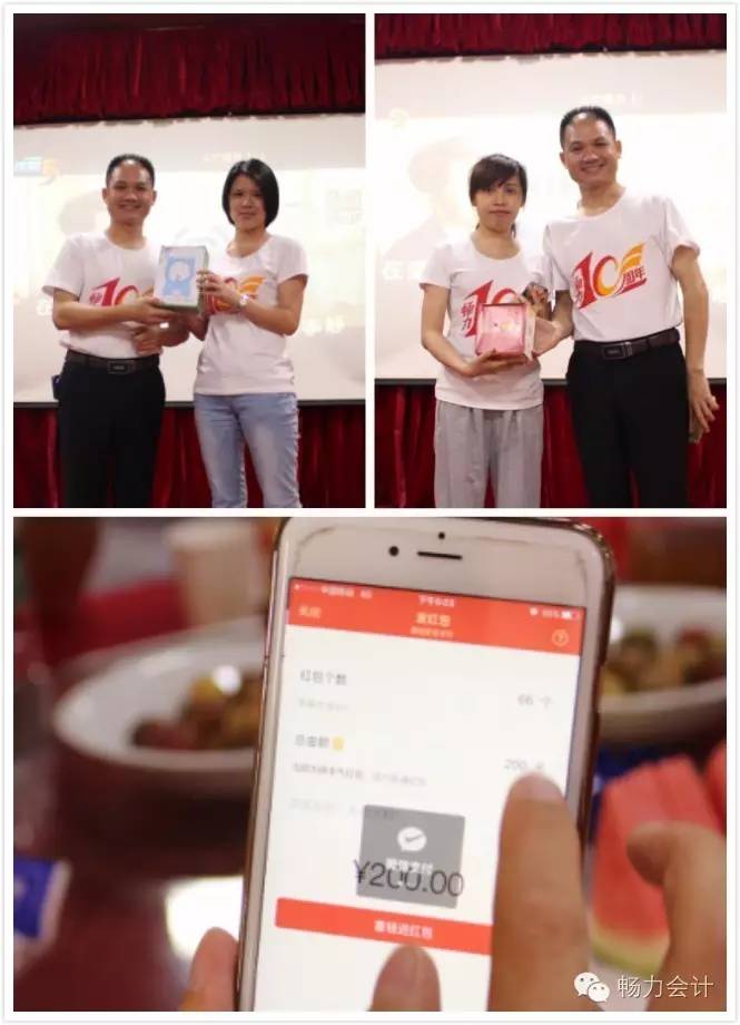 礼物发不够,来个小游戏!董事长发微信抢红包,第一次最少的和第二次最佳的分别得到了奖品(好羡慕)。