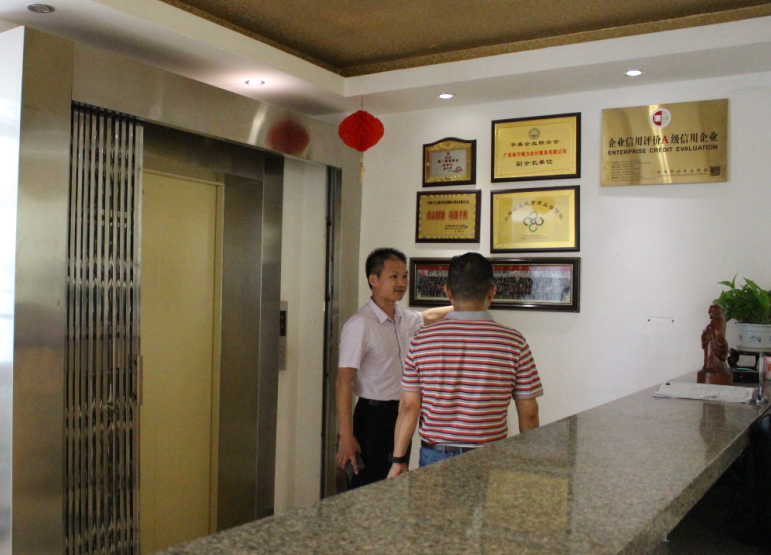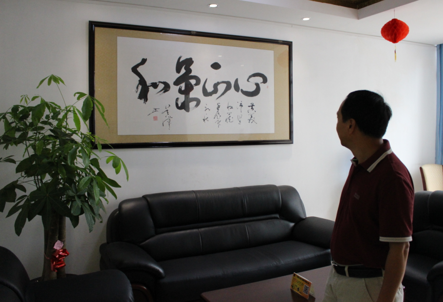 (黄义沛总裁向祥浩高层介绍畅力获得的荣誉牌匾)
