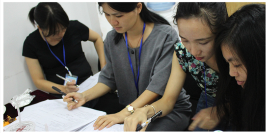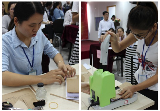 评委认真检查装订成果并评分