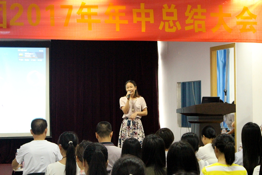 接下来会议正式开始。会议先由畅力会计集团总经理韦柳艳总结上半年工作情况: