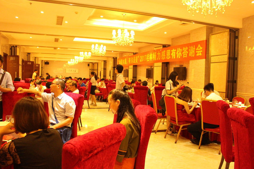 ▲16:30桂林客户渐渐将会场坐满。正式开始前,大家先一起喝茶,相互认识