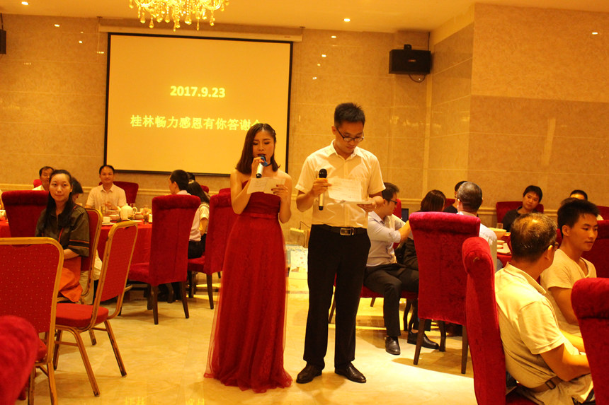 ▲畅力总部的廖春兰和吴俊樟担任答谢会主持人,答谢会正式开始喽!
