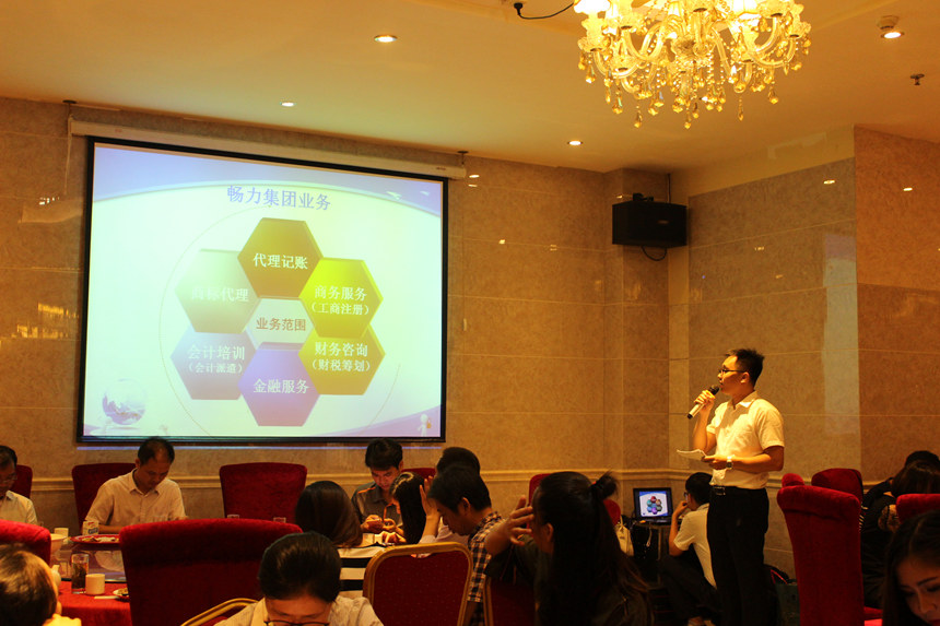 ▲主持人吴俊樟向桂林的客户介绍了畅力会计集团:我们的成长历史、我们的团队、我们的业务范围、我们的优势。强大的团队和系统(一套账、客户管理系统和畅力微信服务平台)一定会给桂林的客户带去更便捷、更直观、更高效的代理记账服务!