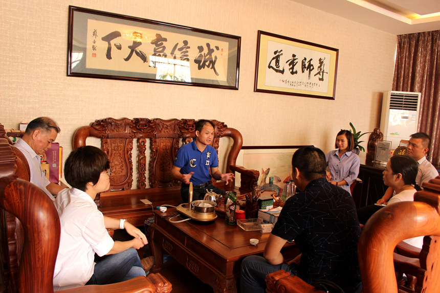 参会的畅力小伙伴也向晏总他们介绍了自己,与宏诚财务一起交流、相互学习。之后,在畅力集团董事长办公室,董事长黄义沛与宏诚财务晏总一起就南宁、兴义两地代理记账行业的市场状况沟通交流,进一步探讨了深入合作的可能: