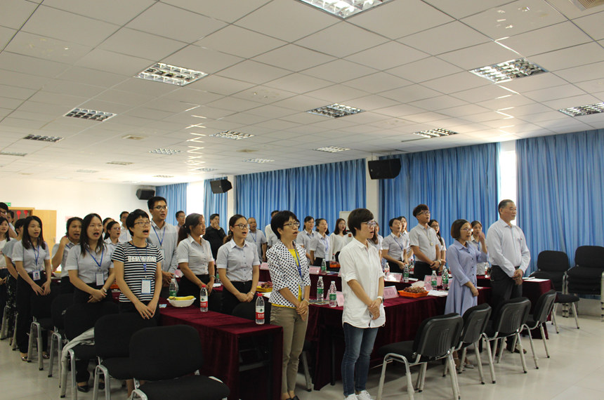 “我们敬业拼搏,我们共创共荣,我们肩并肩作战,手拉手前行……”