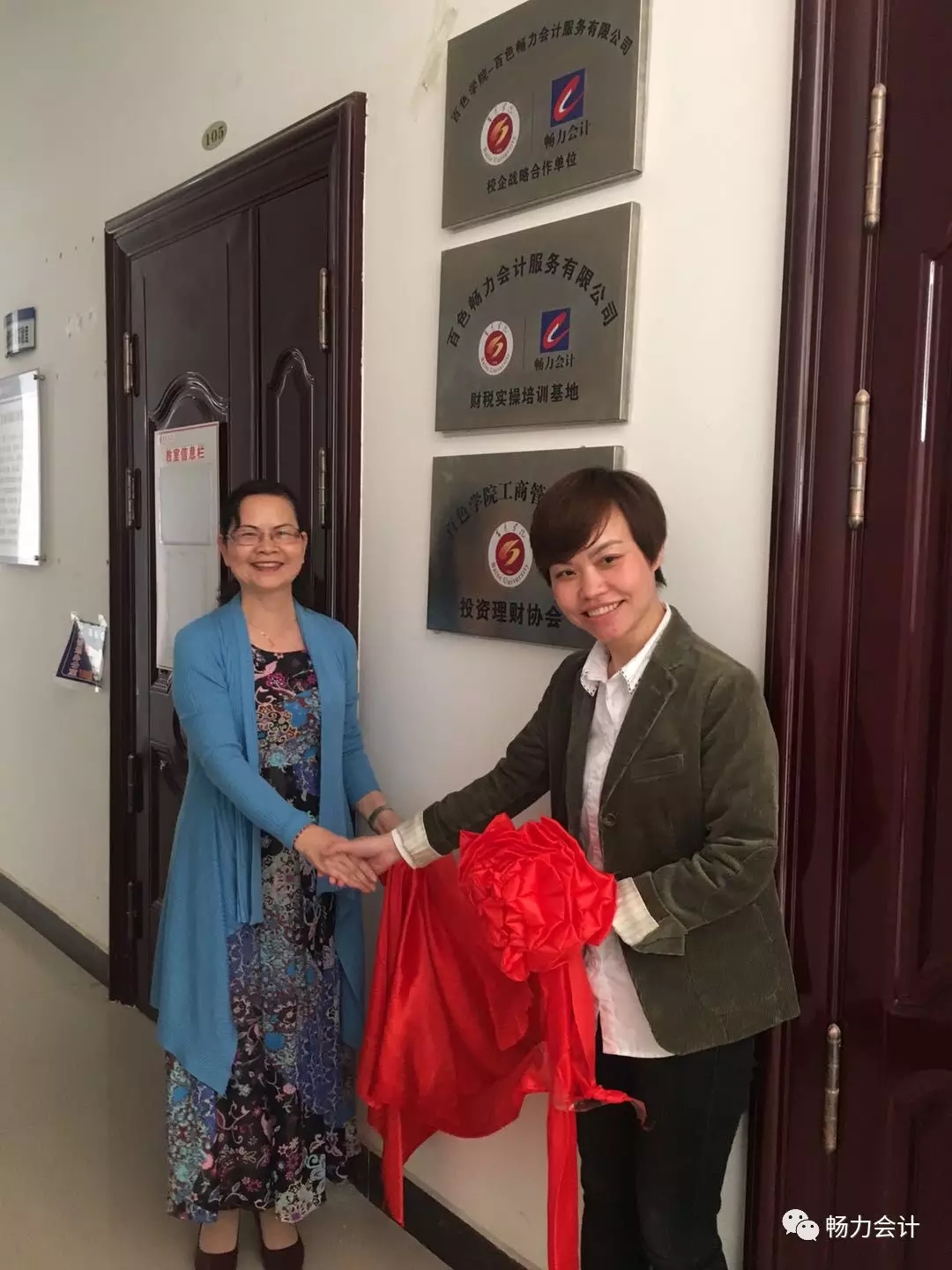 4.在百色学院和畅力会计领导的见证下,“校企合作基地”正式挂牌。