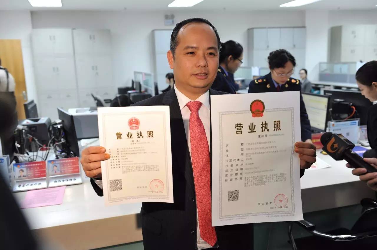 ▲2014年3月3日,黄先生拿到广西注册资本登记制度改革首张新版营业执照