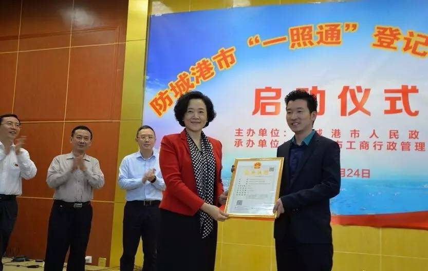 4月24日,广西防城港市发放全国首张34证合一的“一照通”营业执照。